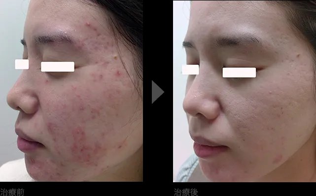 A. 赤みが残る場合はビタミンC誘導体、凹みが目立つ場合はレーザー治療(フラクショナルCO2レーザー)やダーマペンが有効です。