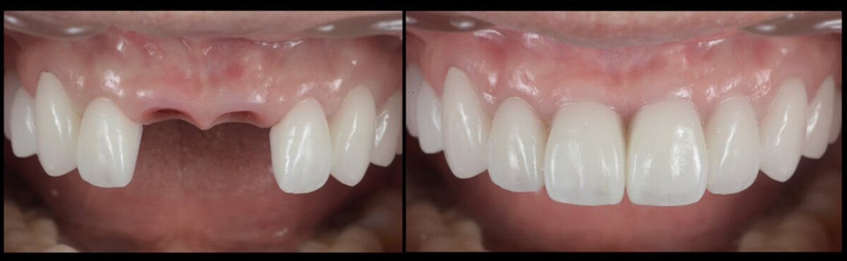 上顎前歯部の外傷による欠損(2本)