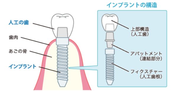インプラントは主に3つの部分から構成されています: